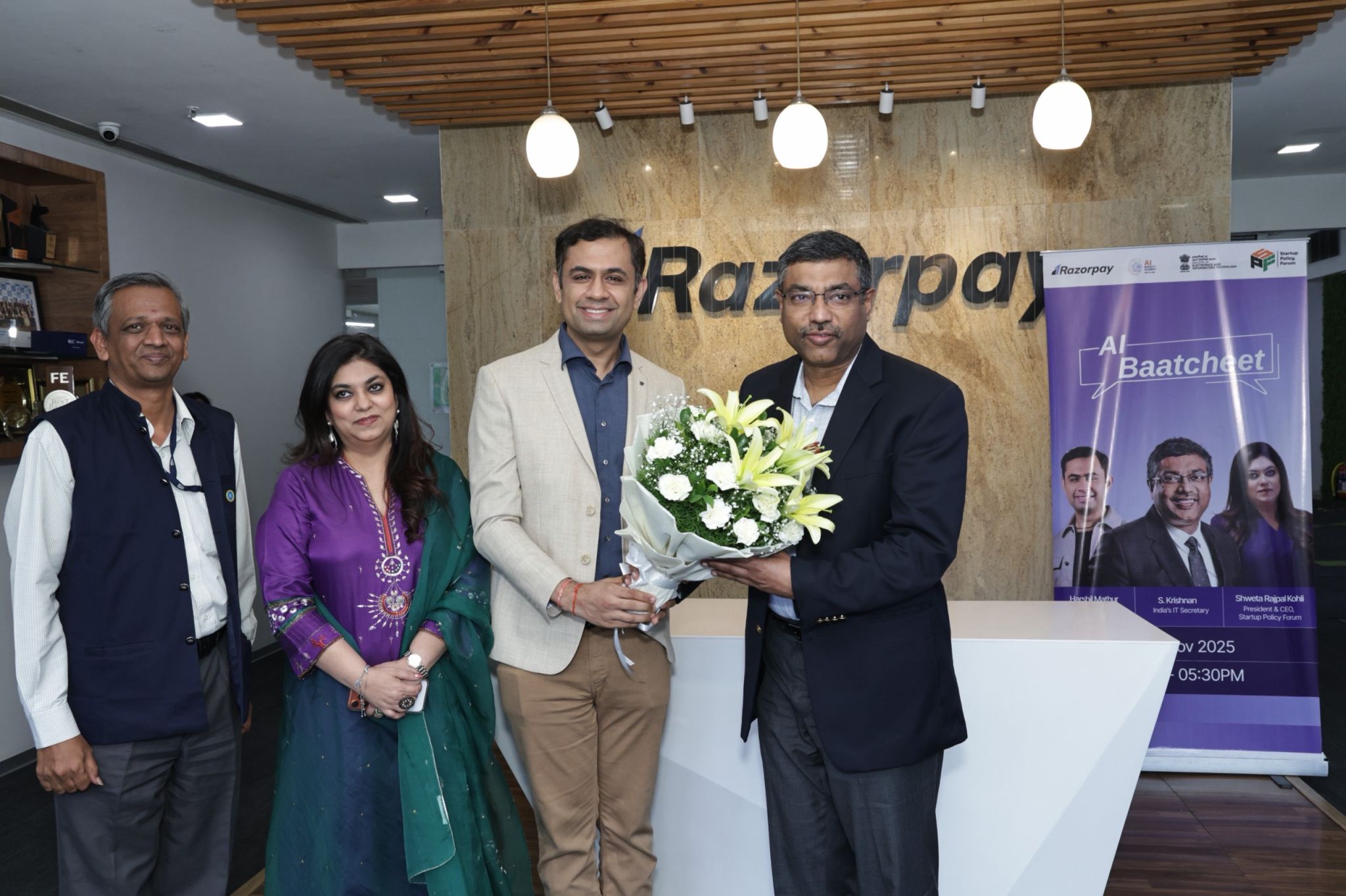 It was an honour for our CEO, Shweta Rajpal Kohli and Razorpay CEO, Harshil Mathur to host S Krishnan, Secretary, Ministry of Electronics and Information Technology at the Razorpay office in Bengaluru for an “AI Baatcheet” session with the startup community.